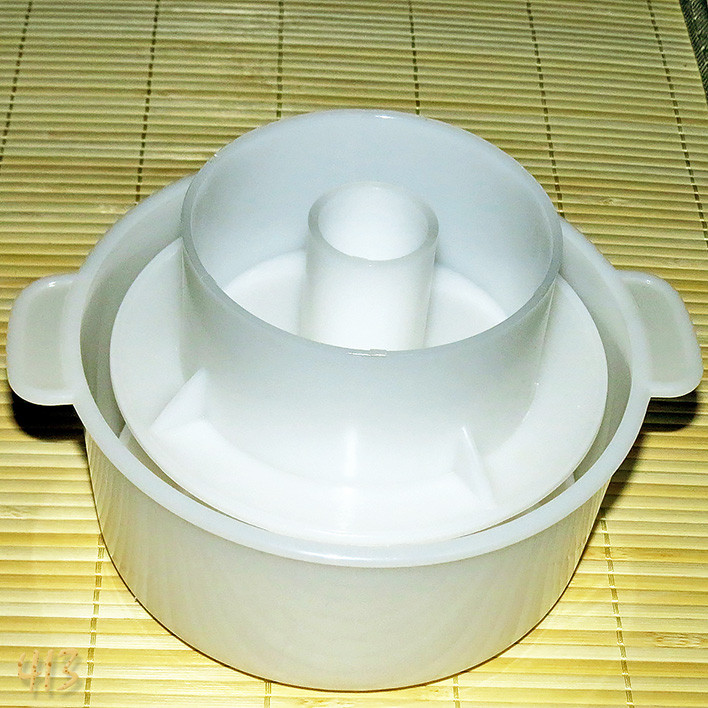Добре підходить для приготування сиру в домашніх умовах. Не вимагає спеціального обладнання для преса та іншого додаткового обладнання. У комплекті є поршень. У нижній частині форми міститься 332 отвори для відтоку сироватки під час пресування головки сиру. Надійна та зручна форма, не вимагає спеціальних навичок.